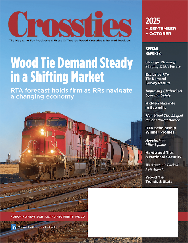 RTA works to keep tie markets strong and healthy through the active and responsible promotion of the wood crosstie, product improvement engineering, communication across the rail industry network, and a steady flow of useful information published in Crossties.
